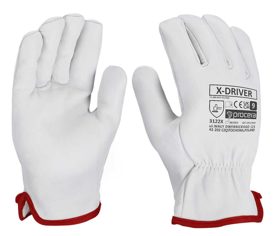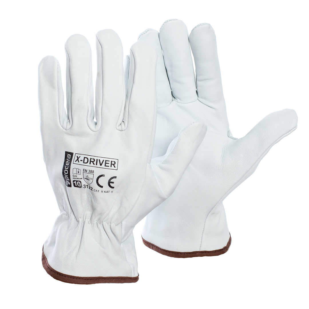 Rukavice X-DRIVER vyrobené výhradně z kozí kůže. Jsou zakončeny širokou manžetou s gumičkou. Ideální pro manuální práci. Velmi dobrá přilnavost. Vysoká odolnost proti oděru. Dobře se přizpůsobí tvaru ruky.