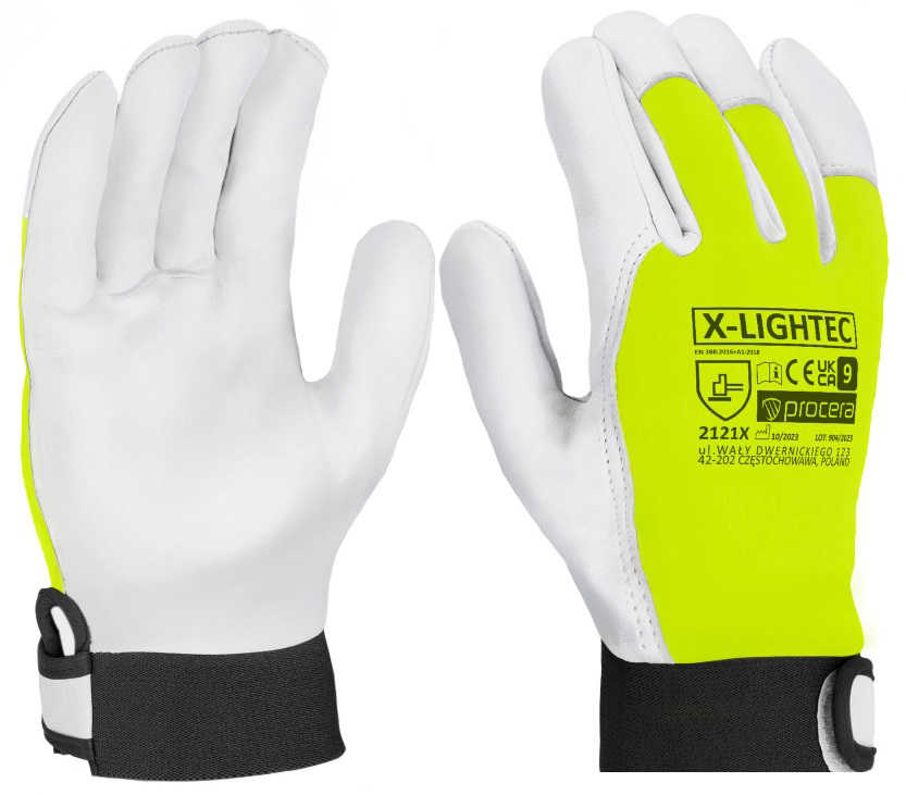 Rukavice X-LIGHTEC vyrobené z jednoho kusu celozrnné kozí kůže v úchopové části, svršek je z elastické HV žluté látky. Zapínání na suchý zip v kombinaci se stahovací šňůrkou zajišťuje dokonalé padnutí. Ideální pro ruční práci. Velmi dobrá přilnavost. Vysoká odolnost proti oděru. Barva: žlutá/bílá.Norma: EN 388:2016Uvedená cena za 1 pár. Alternativní balení: Balení: 1balíček 12 / karton120. Záruka: 24 měsíců
