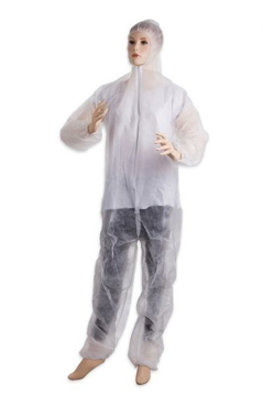 Jednorázový plášť z netkané textilie, zapínání na suché zipy, s límečkem, bez kapes. Ve velikosti L, XL pouze bílá