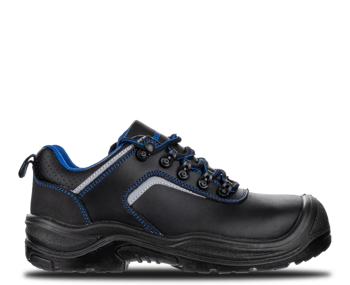 Bezpečnostní celokožená velmi odolná polobotka obuv s označením S3.   Tato obuv je vybavena protiokopovou špicí, takže svršek obuvi je více chráněn proti mechanickému poškození, boty vám tak déle vydrží. Co se bezpečnostních prvků týče, obuv je vybavena kompozitní tužinkou, která chrání prsty chodidel před mechanickým poškozením, dále pak lehkou kevlarovou planžetou, která zabraňuje propíchnutí chodidla zespod např. při šlápnutí na hřebík. Dalšími neméně důležitými bezpečnostními prvky jsou protiskluzná SRC vlastnost podešve, která zajišťuje lepší stabilitu při chůzi a dále pak také po bocích umístěné reflexní  prvky, které vám zaručí, že za tmy a šera budete po osvitu světly aut a kol lépe viděni, budete více v bezpečí.   A protože nejen bezpečí, ale také pohodlí je velmi důležité, oceníte, že tyto boty mají odpružení v oblasti paty, čímž dochází k tlumení rázů způsobených chůzí a tím i k šetření svalstva nohou.   Tato obuv Vám tak zajišťuje chodidlům bezpečí a pohodlí v zátěžovém pracovním prostředí.