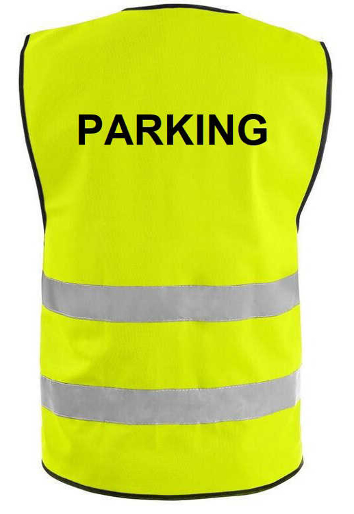 Popis: signální vesta s reflexními pásky k nošení přes svrchní oděv, velikost univerzální. S nápisem na zádech "PARKING".