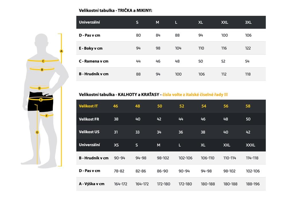 Měřte těsně u těla - rozměry uvedené v tabulkách jsou tělesné míry. V případě, že naměříte hodnotu mezi dvěmi velikostmi, objednávejte větší velikost.