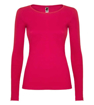 Popis: Polopřiléhavé dámské triko s dlouhým rukávem a kulatým výstřihem zakončeným jemným lemem. Rukávy bez manžet, boční švy.