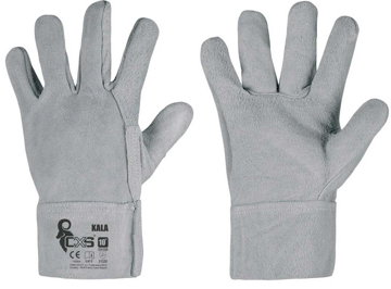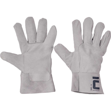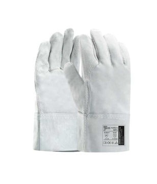 Rukavice z hovězí štípenky, zesílená dvojitá vrstva v dlani na palci a ukazovák a s 7 cm manžetou.