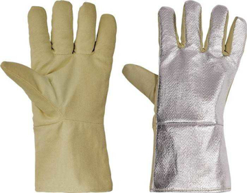Dvouvrstvé rukavice z materiálu aramid (320 g/m2), s pohliníkovaným hřbetem, ochranou před sálavým teplem, taveninou a kontaktním teplem do 250 °C, krátkodobě i do 500 °C.