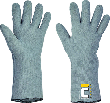 Rukavice šité ze speciální tkaniny, máčené v nitrilu, s termoizolační podšívkou z netkané textilie. Vhodné pro manipulaci s horkými předměty do 250 °C.