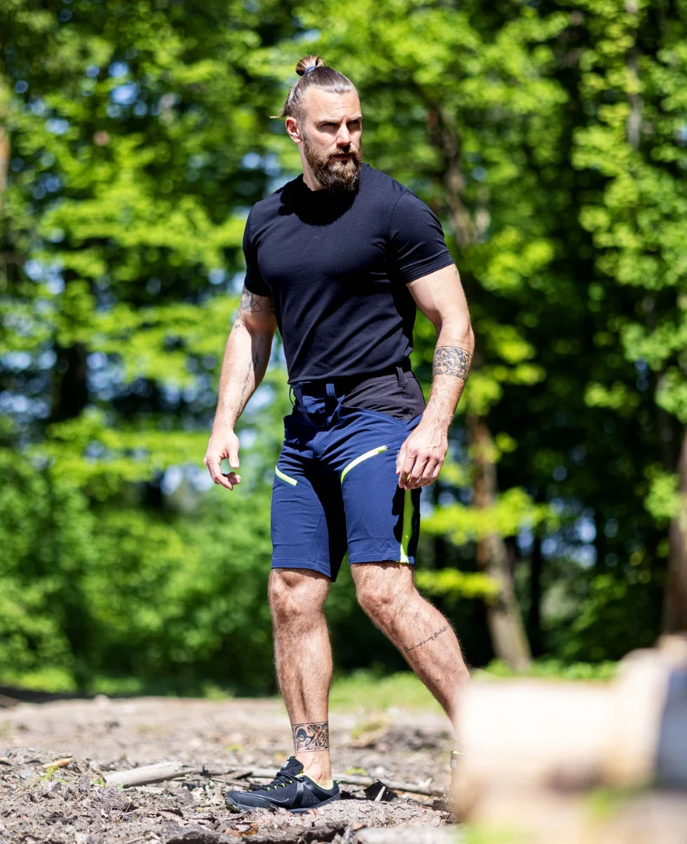 Pánské softshellové kraťasy ve štíhlém střihu SLIM FIT. Elastický softshell v kombinaci s funkčním tvarováním zajistí skvělé přizpůsobení pohybu. Kraťasy jsou vhodné i do náročných klimatických podmínek, jsou vodoodpudivé a zároveň prodyšné. Speciální vnitřní vrstva zaručuje vysoký komfort při nošení. 2 praktické zipové kapsy na přední straně a 1 zipová kapsa na zadní straně umožňují bezpečné uložení drobností. Pružný pas zajišťuje maximální pohodlí a optimální přizpůsobení obvodu. Nohavice jsou doplněny ventilačními zipy, které kromě odvodu tepla zajistí pohodlné rozšíření obvodu nohavic. Pro zvýšenou bezpečnost jsou kraťasy doplněny o reflexní 3D potisky.