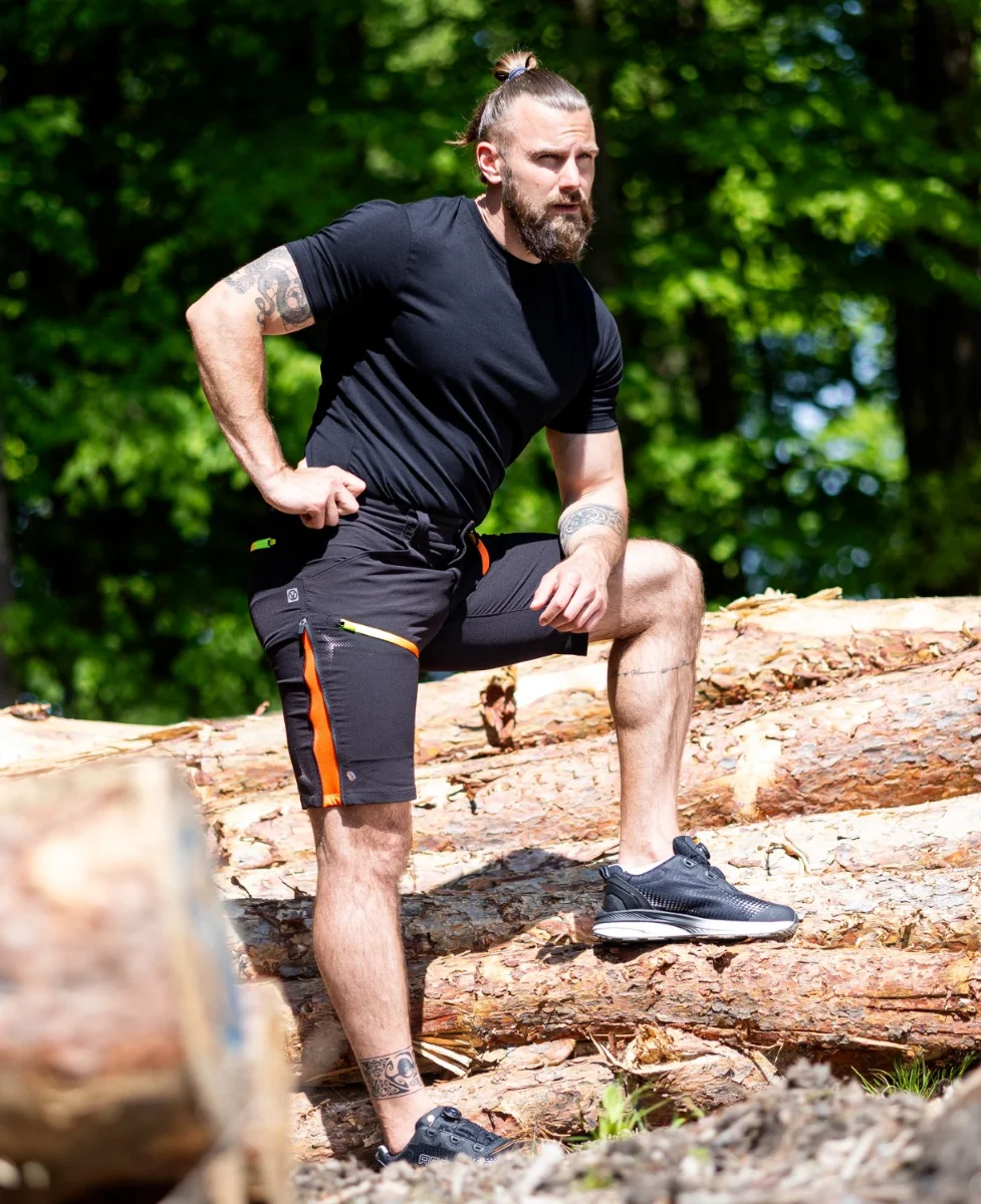 Pánské softshellové kraťasy ve štíhlém střihu SLIM FIT. Elastický softshell v kombinaci s funkčním tvarováním zajistí skvělé přizpůsobení pohybu. Kraťasy jsou vhodné i do náročných klimatických podmínek, jsou vodoodpudivé a zároveň prodyšné. Speciální vnitřní vrstva zaručuje vysoký komfort při nošení. 2 praktické zipové kapsy na přední straně a 1 zipová kapsa na zadní straně umožňují bezpečné uložení drobností. Pružný pas zajišťuje maximální pohodlí a optimální přizpůsobení obvodu. Nohavice jsou doplněny ventilačními zipy, které kromě odvodu tepla zajistí pohodlné rozšíření obvodu nohavic. Pro zvýšenou bezpečnost jsou kraťasy doplněny o reflexní 3D potisky.