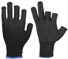 bezešvé úpletové rukavice s terčíky v dlaňové části, chybějící tři články prstů