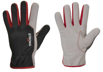 kombinované rukavice, dlaň, palec a špičky prstů z umělé kůže, hřbet z polyesteru, pružinka v zápěstí, odolné kontaktnímu teplu do 100°C s prodejní etiketou