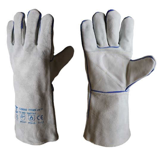 svářečské rukavice z výběrové hovězinové štípené usně, šité kevlarovou nití, bavlněná podšívka, zdvojená dlaň