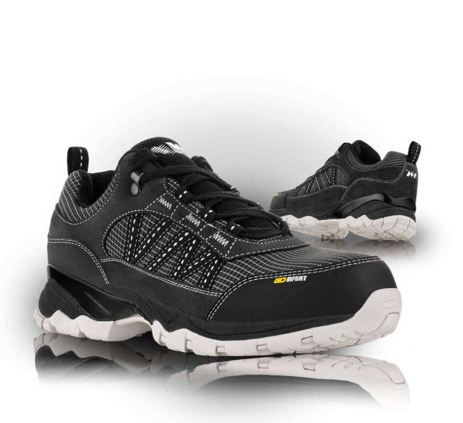 Svršek: broušená hovězinová useň VELUR v kombinaci s textilem v tloušťce 1,2 - 1,4 mmPodšívka: laminovaná prodyšná textilie MESHVkl. stélka: HI-POLY - anatomicky tvarovaná z lehčené polyuretanové pěny potažená textilií MESH, antistatickáPodešev: EVA/RUBBER - lepená konstrukceVelikosti: 36-48Norma: ČSN EN ISO 20345:2012Provedení: S1P SRA - s plastovou tužinkou a kevlarovou planžetouZáruka: 24 měsícůUvedená cena za 1 pár